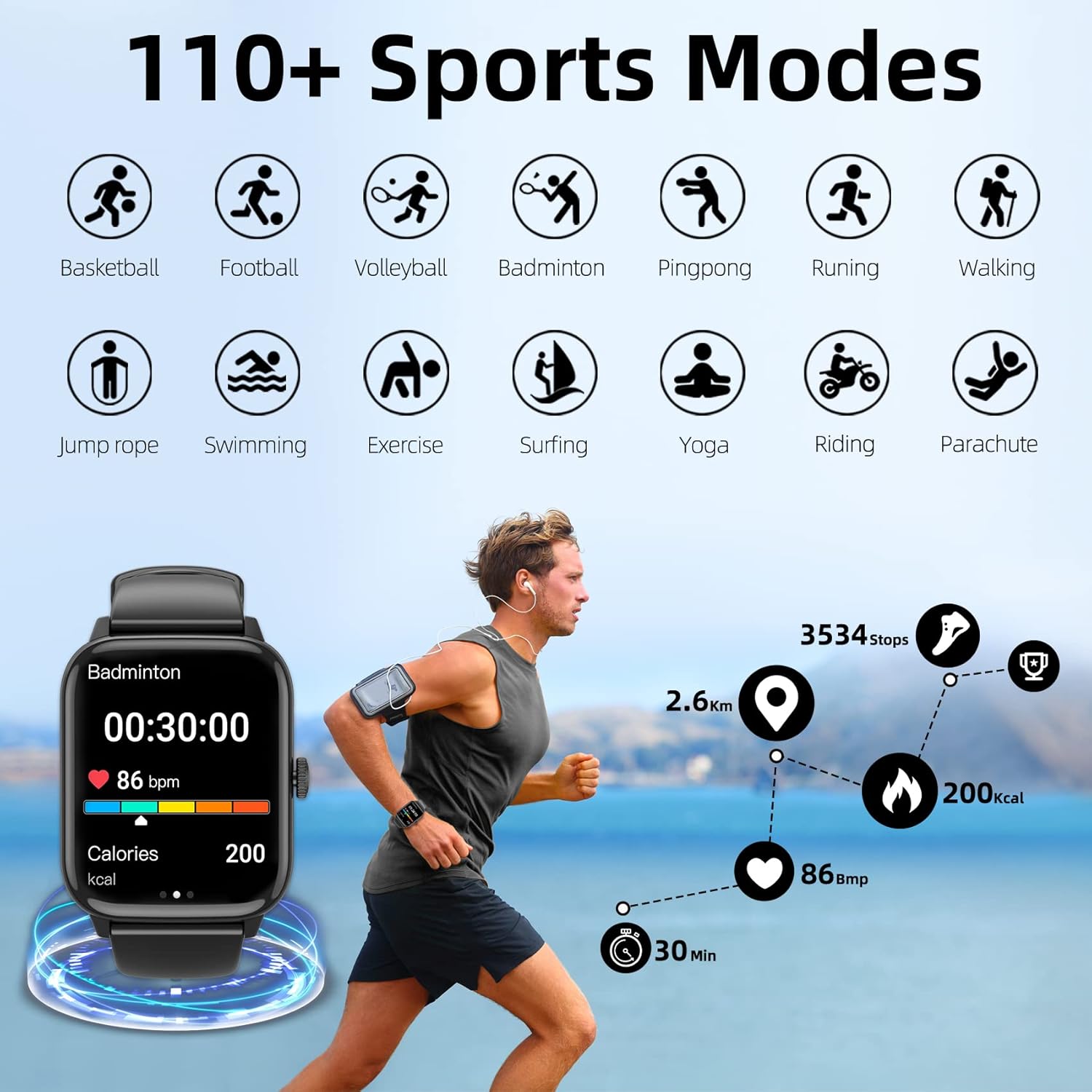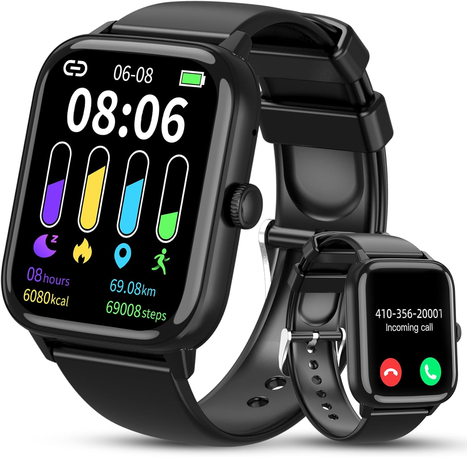 Smart Watch (Answer/Make Call), 1.96" Fitness Tracker Watch with Step Calorie Counter, 110+ Sports Modes IP67 Waterproof, Smartwatch for Men Women Bluetooth Watch Compatible with Android iPhone iOS