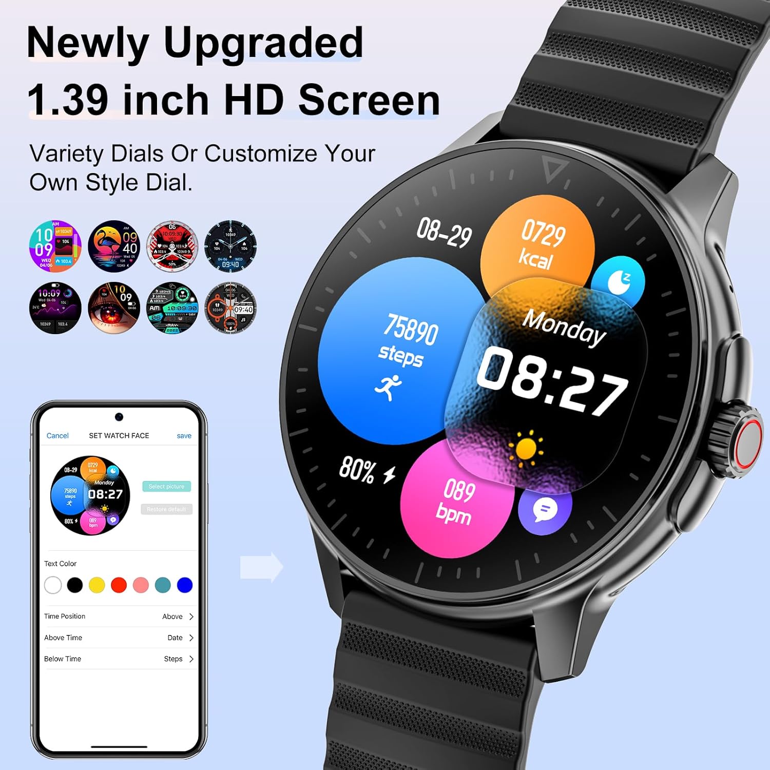 Smart Watch for Men Women Answer/Make Calls, 1.39''Touch Screen Fitness Tracker with 110+Sports Modes,Voice Assistant Fitness Watch,IP67 Waterproof Smartwatch for Android iOS